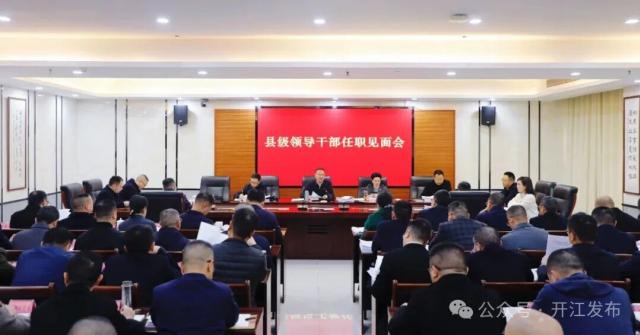 11月26日,开江县召开县级领导干部任职见面会,县委书记庞佑成主持会议并讲话。县委副书记、县长张鑫,县政协主席何先如,县委副书记吴昌涛出席会议。