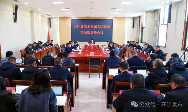 2月12日,开江县第十九届人民政府第99次常务会议召开,传达学习省十四届人大五次会议和省政协十三届四次会议、省政府第四次廉政工作会议精神,研究贯彻落实意见。县委副书记、县长张鑫主持会议并讲话。
