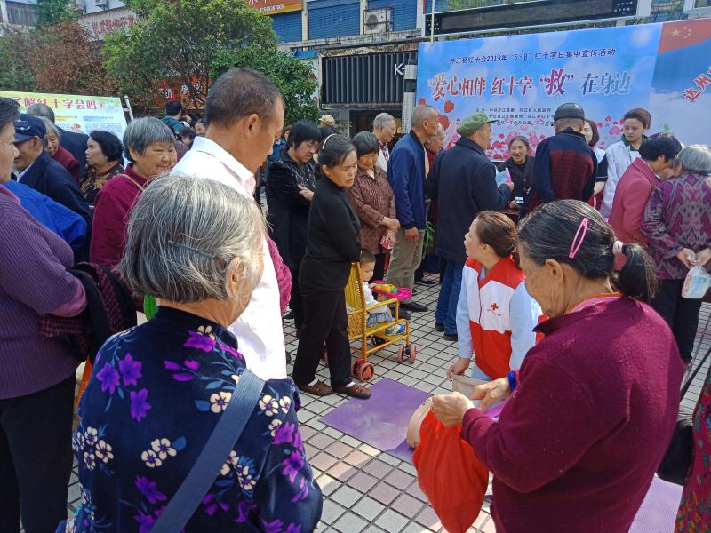 5月10日上午,开江县红十字会会同县卫生健康局、县红十字志愿服务队在县城清河广场举行2019年“5.8”世界红十字日集中宣传活动。县红十字会会长杨爱轩出席活动并讲话,副会长崔永江陪同。