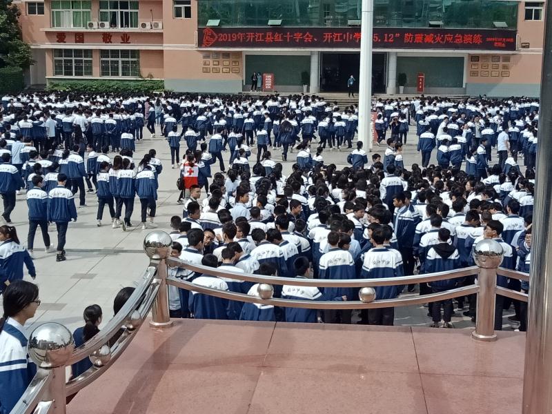 下午3时,开江县红十字会、县应急管理局、县教科局、开江中学和开江县红十字志愿服务队为迎接即将到来的“5.12防灾减灾日”,同时在开江中学、新宁一小联合举办了应急防灾演练,参与师生达5000余人。进一步提高了学校师生的应急避险能力,对以后遭遇灾害自救互救提供了有力保障。