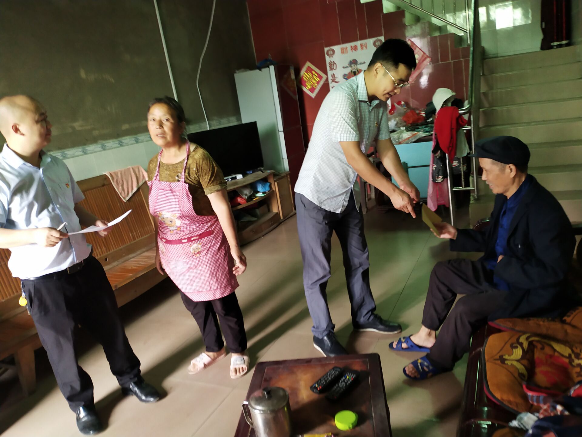 下午2点30分,镇机关支部全体党员兵分多路,在镇党委书记蒋治渝,镇长肖宇航,人大主席罗良溧及镇党委副书记、工会主席刘小纲同志的带领下,一起走访慰问了辖内各支部的老党员和困难党员,并为他们送去了慰问金,进一步了解了党员们的困难与需求,让老党员、困难党员感受到了党组织的温暖。