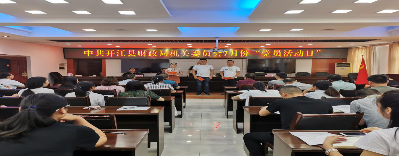 为持续有效推进党的组织生活正常化、党内教育经常化、党员管理规范化,2020年7月8日,县财政机关党委在局七楼会议室开展了主题为开展了“感党恩、颂党情”为主题的7月“党员活动日”活动,为促进“活动”对党外职工的教育和引领作用,除机关全体党员外,普通干部职工均参加了活动,党员领导干部以