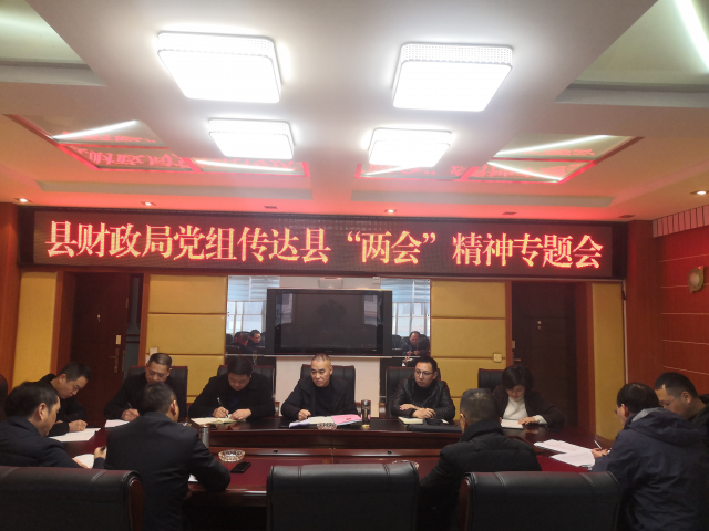 县“两会”胜利闭幕后,县财政局庚即组织召开局党组会议,传达学习“两会”精神,安排部署贯彻落实意见。