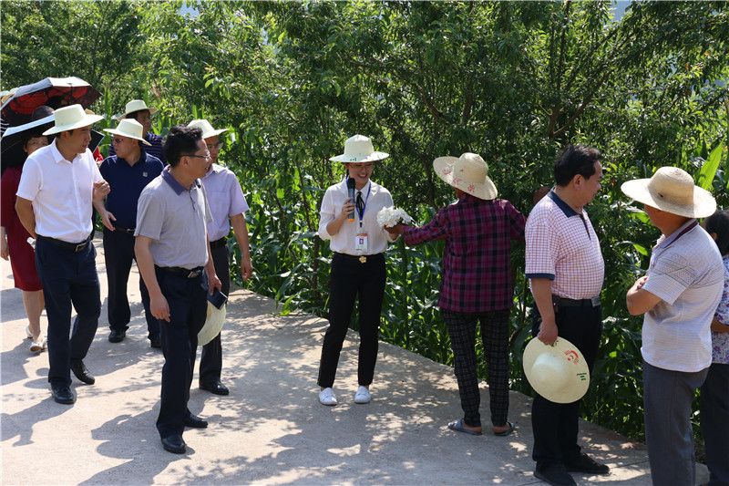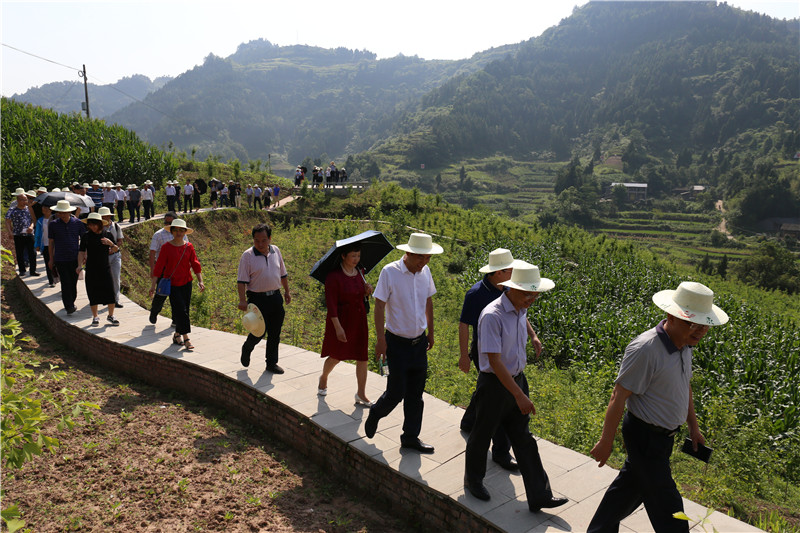 全体与会人员在县委副书记袁勇的陪同下,到宝石镇程家沟村就产业发展基地、新村建设、农旅融合等方面进行了实地参观考察。大家一边走、一边看,一边交流心得体会,探索“双帮”工作好经验、好做法。