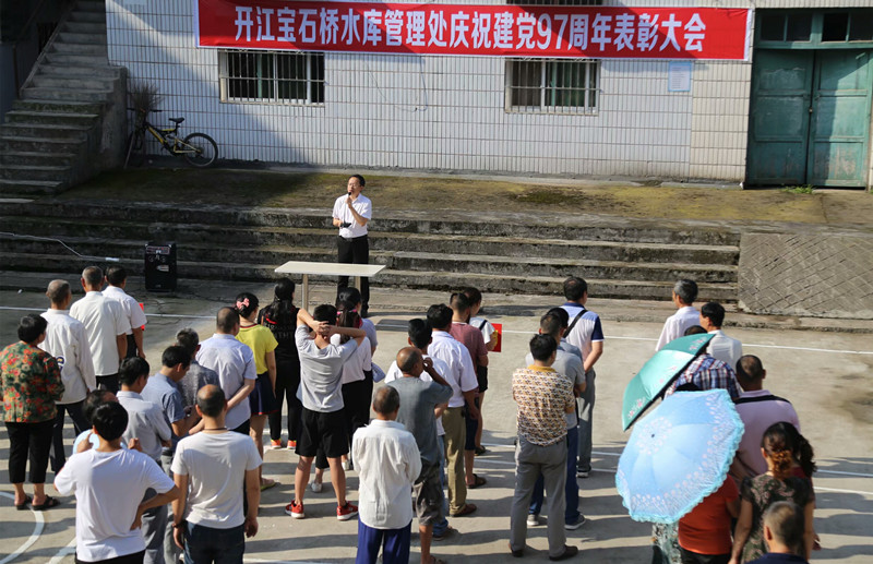 首先,水管处党委书记、主任罗泉同志上了一堂以“牢记使命跟党走,凝聚活力兴水库”为主题的党课。他生动、全面地讲解了宝石桥水库的发展历程,并强调宝石桥水库能有今天的辉煌成绩离不开开江人民移山造湖、开拓创新、和谐共建的“宝石”精神,更离不开党和政府的正确决策。紧接着,对一年以来表现突出的党支部、优秀党务工作者、优秀党员进行表彰。
