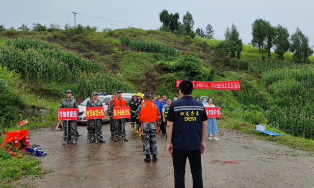 2022年7月2日,上午9时,小雨,开江县回龙镇开展了一场实景模拟综合应急演练。此次应急演练分为防汛救援、森林防灭火、地灾救援三个分项。