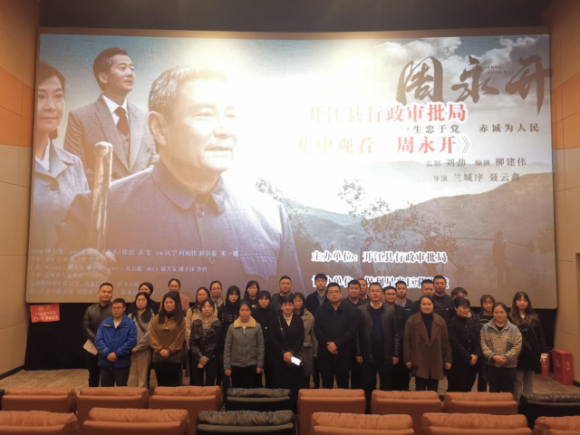 学习先进榜样,汇聚前行力量。4月24日,开江县行政审批局组织全体干部职工集中观看正在热映的电影《周永开》,深切感受周永开同志“不忘初心、牢记使命”“一生忠于党,赤诚为人民”的高尚革命情怀。
