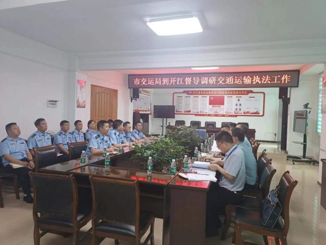 7月4日上午,达州市交通运输局二级调研员潘小波带队到开江督导调研交通运输执法工作,市局执法监督科、运输科、厅总队七支队相关人员陪同调研。