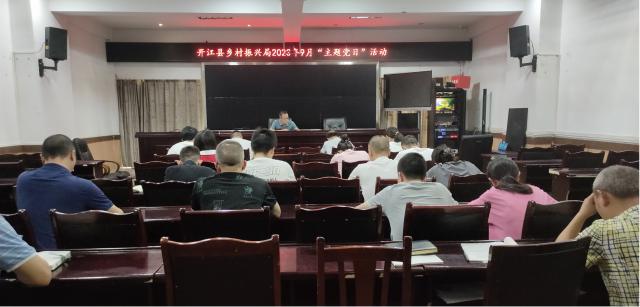 党组书记、局长罗绂组织全体党员学习《习近平著作选读》(第二卷)第1页-第305页,《新时代党的建设和党的组织路线》《我将无我,不负人民》,把学习选读作为坚持用习近平新时代中国特色社会主义思想凝心铸魂的重大政治任务;学习《在学习贯彻习近平新时代中国特色社会主义思想主题教育工作会议上的讲话》,扎实抓好主题教育,为奋进新征程凝心聚力;学习《在二十届中央政治局第四次集体学习时的讲话》,打牢思想理论基础,做到用理论解决问题,用理想付诸行动,用理念推动实践,推动主题教育走深走实、见实见效;学习《蔡奇在学习贯彻习近平新时代中国特色社会主义思想主题教育第一批总结暨第二批部署会议上强调总结好第一批主题教育有效做法和成功经验把第二批主题教育科学谋划好精心组织好》,以高度负责的精神为第二批主题教育开新局、谋新篇;学习《关于加强和改进新时代全民国防教育工作的意见》,结合乡村振兴实际认真抓好贯彻落实,协力推动全民国防教育高质量发展,为实现强国梦强军梦提供不竭动力和强大支撑;学习《四川省民族团结进步条例》,铸牢中华民族共同体意识,巩固中华民族多元一体格局,加强中华民族共同体建设,推进新时代民族团结进步事业高质量发展;同时推动党史学习教育和党的二十大学习常态化长效化,并坚持党员领导干部以普通党员身份参加、给当月入党的党员陈泽胜过“政治生日”、现场交纳党费“三个常态”。