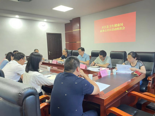 参观结束后,在县卫健局会议室召开座谈会,会议由县卫健局党委书记、局长杨昌涛主持,对当前全县卫健系统概况进行了介绍,同时针对卫健系统自身特点和群众关注热点,从部门工作职责、工作流程、服务承诺、政务服务事项网上办理等方面入手,积极宣传各项惠民便民政策,现场解答群众咨询问题,助力开江卫健系统服务优化提升。