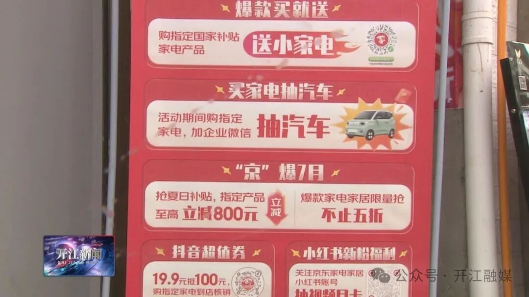 为进一步激发家电市场消费活力,今年,开江县延续国家家电补贴政策,动员家电门店推出各类优惠折扣活动,为广大家庭提升购买能力,以稳定的政策补贴促进消费信心。