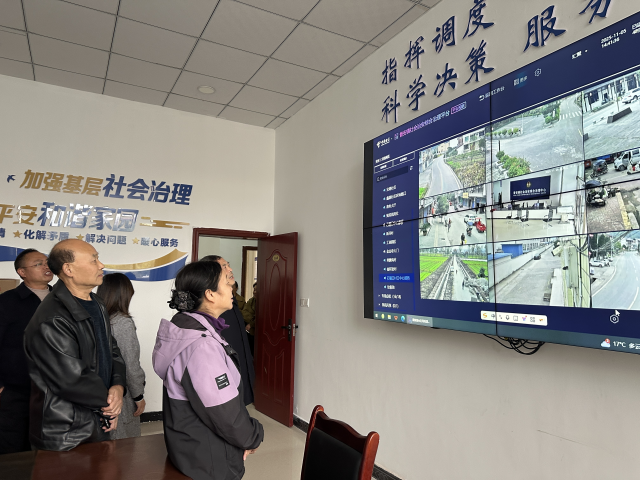 在综治中心,代表们实地参观了矛盾纠纷调解功能区,系统了解从接待受理、组织调解到达成协议的全链条调解流程。代表们还重点观摩了“平安视联”系统平台的现场演示,通过大屏幕实时查看重点区域治安动态,直观感受现代科技在提升基层治理效能、保障公共安全方面的重要作用。