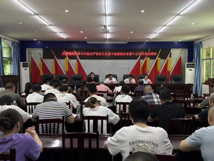 为迅速把全镇上下思想和行动统一到县委决策部署上来,8 月 1 日(周五)上午 11:00,八庙镇在机关三楼大会议室召开传达贯彻中共开江县委十四届十次全会精神会议。会议由镇党委副书记、镇长李进立主持,镇领导班子、镇机关全体干部职工及各村(社区)党组织书记参会。
