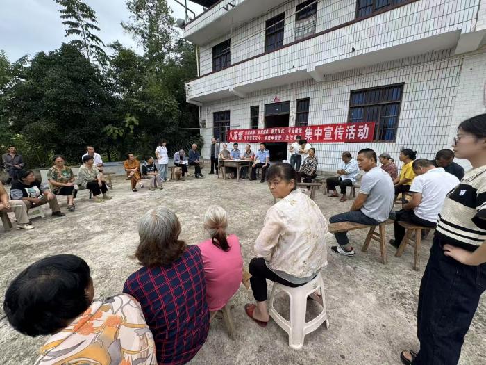 9 月 10 日,八庙镇以院坝会形式开展集中宣传活动,聚焦扫黑除恶、防邪禁毒、防艾反诈、平安建设、维护国家安全及未成年人保护六大主题,由副镇长蒋朝艳牵头组织,联合长岭派出所共同推进,通过“面对面讲解 互动答疑”的方式,向辖区群众普及安全知识与法治观念。