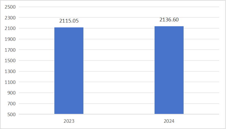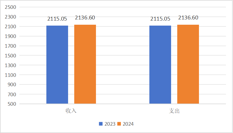 2024年度收入、支出总计均为2136.60万元。与2023年度相比,收入、支出总计各增加21.55万元,增长1.02%。主要变动原因是本年人员经费增加。