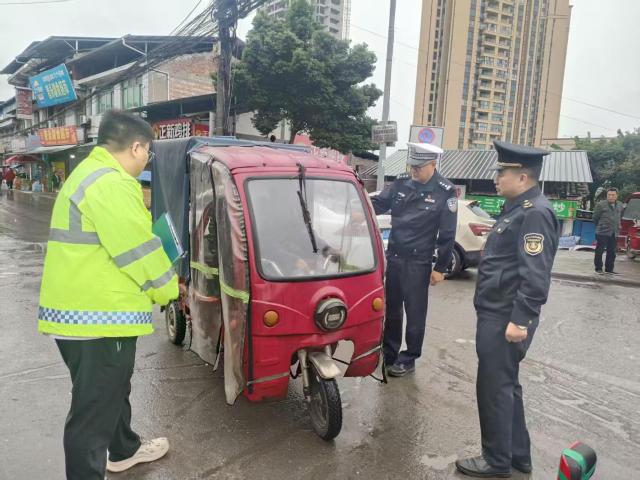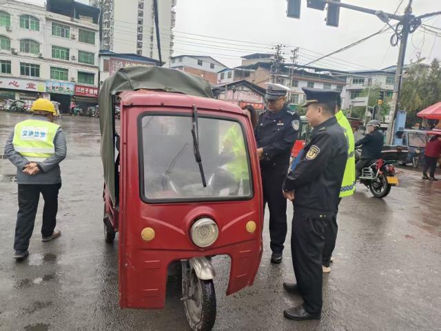 二是协同治理,形成管控合力。行动中,交通、交警部门执法人员与乡镇“交管员”、“劝导员”混合编组,各司其职,密切配合,在各重点赶集乡镇的主要路口、路段设立临时检查点,采取定点检查与流动巡逻相结合的方式,严查两三轮电动车、摩托车无牌无证、违法载人、未按规定佩戴安全头盔、非法加装遮阳伞(篷)、酒后驾驶等易肇事肇祸的交通违法行为,形成齐抓共管的良好局面。