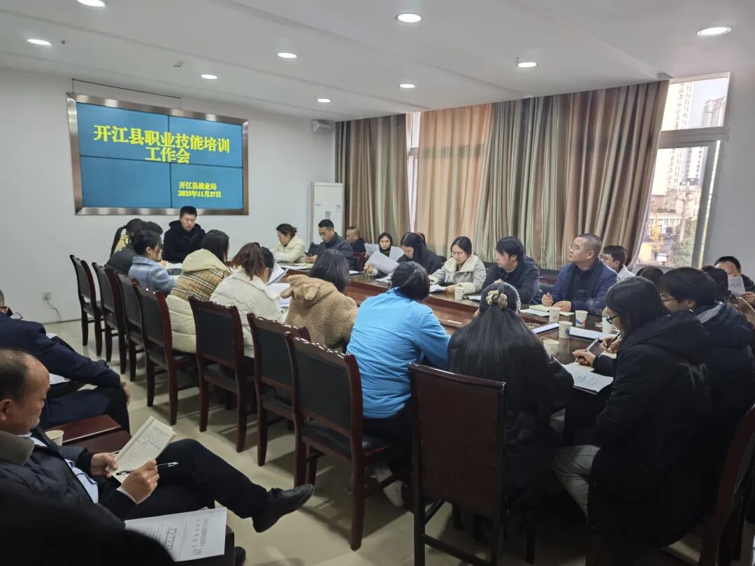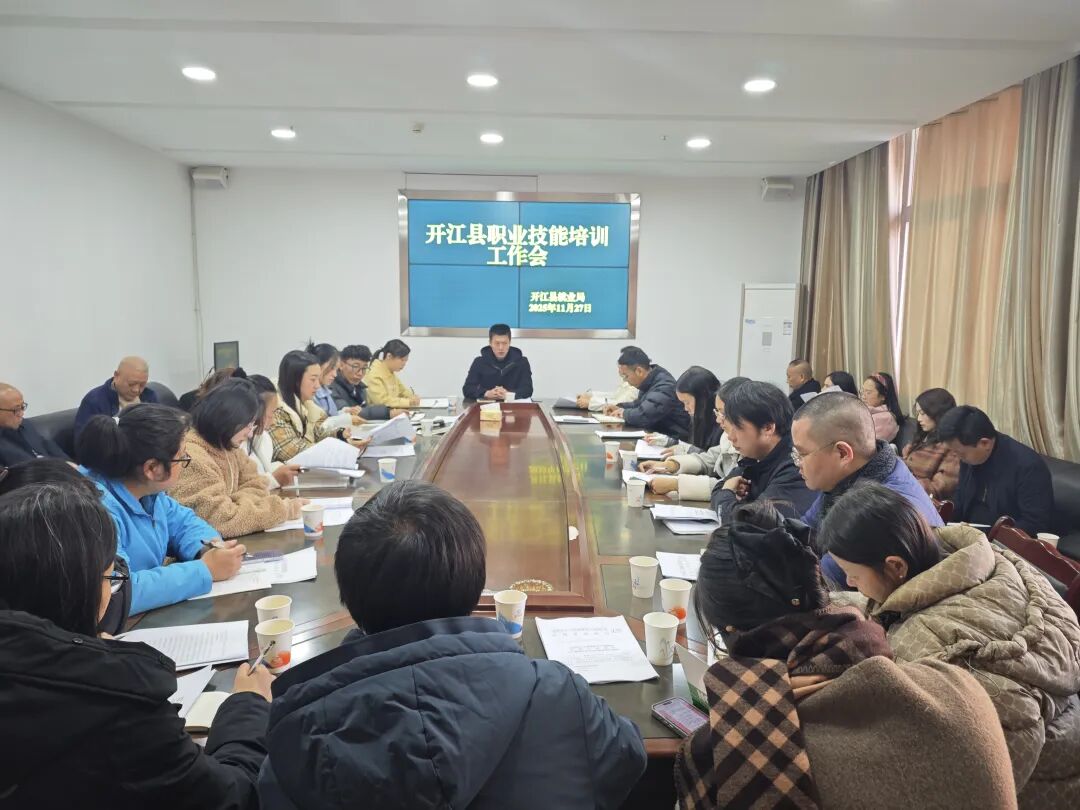 为贯彻落实好省、市职业技能培训工作最新要求,进一步提升职业技能培训质效,2025年11月27日下午,开江县就业服务管理局组织召开全县职业技能培训工作推进会。县就业局主要领导、县级相关部门、各乡镇(街道)、定点培训机构及重点劳务企业参加会议。