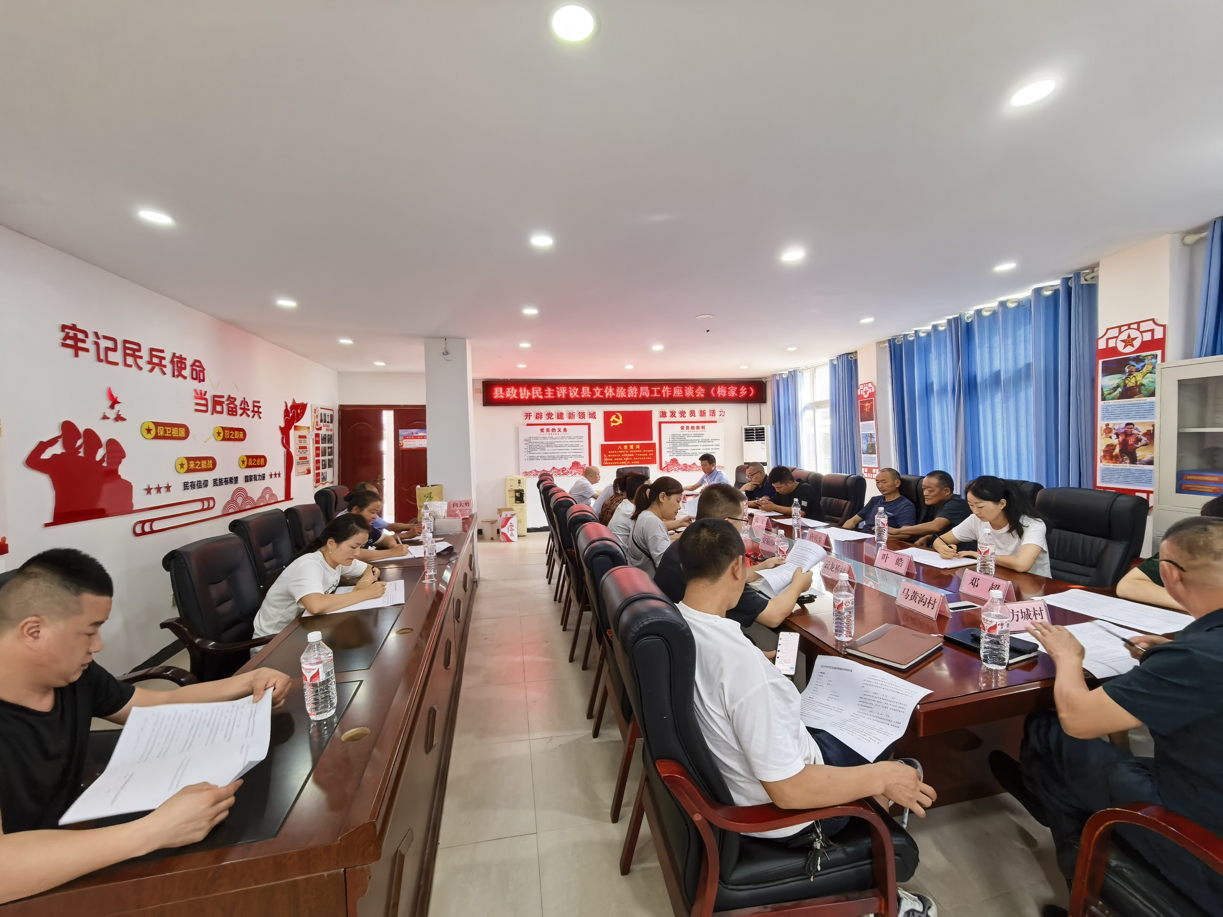 2025年9月2日上午,县政协民主评议县文体旅局工作座谈会在梅家乡三楼党委会议室召开。会议由梅家乡党委书记刘小纲主持,县政协副主席潘先平、民主评议走访测评工作组成员、辖区政协委员代表、乡文体旅分管领导及工作人员、管理服务对象代表、各村(社区)党组织书记及文化体育旅游工作人员等参会。