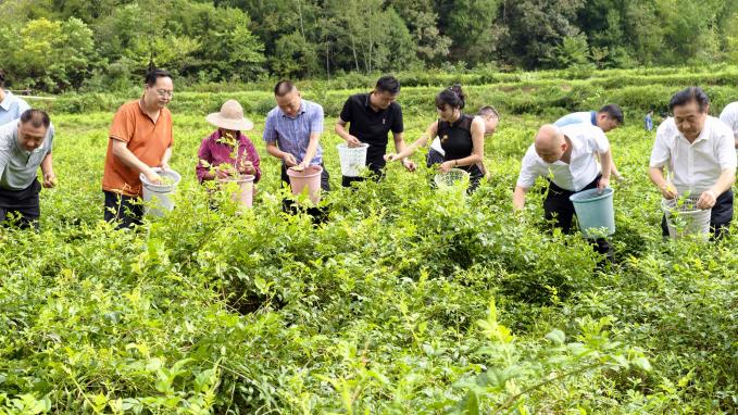 梅家乡党委书记刘小纲在致欢迎辞中回顾了梅家乡藤茶产业在党组织引领下的发展历程。他介绍,2024年梅家乡党委坚持以党建为引领,引入四川硒菇凉生态农业有限公司,创新探索“党支部 公司 集体经济 大户”发展模式,充分发挥党员示范带头作用,种植藤茶300余亩,产值达60余万元。今年更采取“粮食 藤茶”复合种植模式,在党员技术骨干的带动下,扩种藤茶700余亩,预计年产值将突破400万元,为周边群众提供500余人次的临时务工岗位,让越来越多的乡亲在家门口端稳了“茶饭碗”。