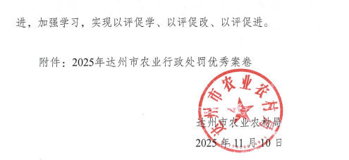 此次荣誉既是对开江县农业执法工作的充分肯定,更是推动执法能力再提升的有利契机。下一步,我单位将以优秀案卷为标杆,深入开展学习培训。同时,持续深化“执法为民”理念,优化“说理式执法 全程普法”工作模式。在严格规范执法的基础上,强化农业法律法规宣传,引导各类农业经营主体自觉守法、规范经营,以优质高效的执法效能,为农业农村领域法治化建设保驾护航。(通讯员于娟)