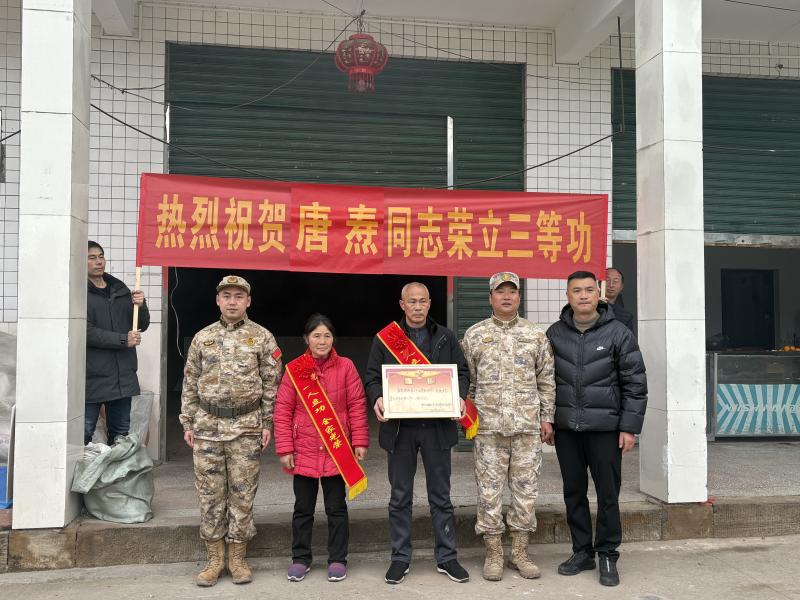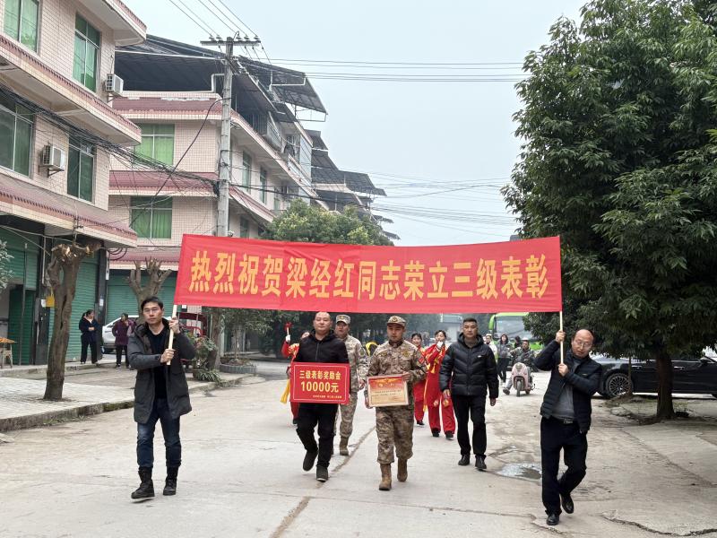 2026年1月14日,四川省开江县退役军人事务局联合人武部等相关部门及乡镇(街道),隆重组织开展为2024-2025年度在部队立功受奖的现役军人家庭集中送喜报活动,将承载着军人荣誉与辛勤付出的立功喜报,逐一送到军属手中,向他们传递党和政府的关怀与温暖,在全社会营造“一人立功、全家光荣”的浓厚双拥氛围。