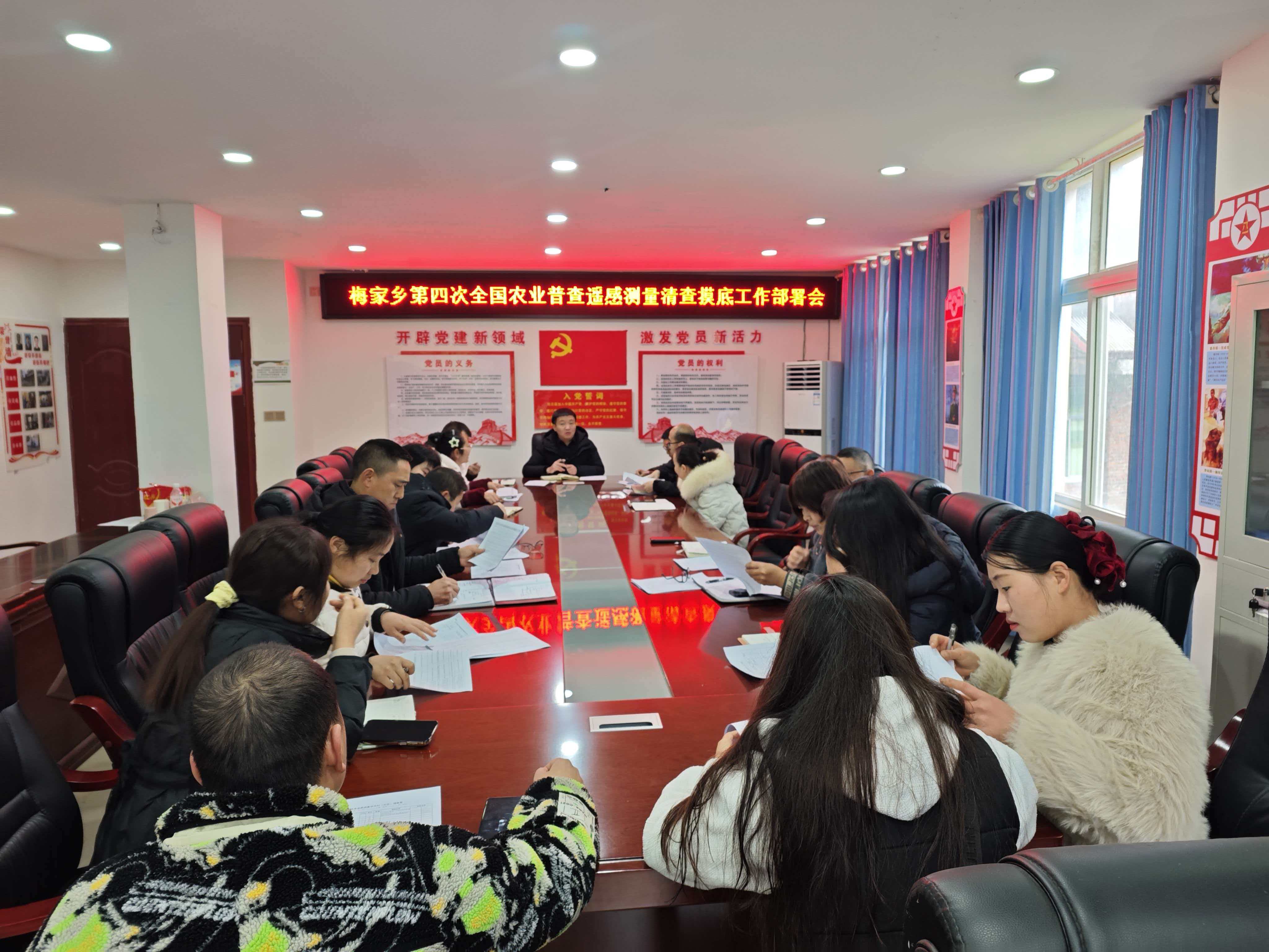 为扎实推进第四次全国农业普查遥感测量清查摸底工作,1月23日,梅家乡组织召开清查摸底工作专项部署会。各村普查指导员、普查员及乡农业普查办公室全体成员参加会议。
