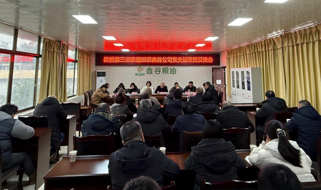 根据县委巡察工作领导小组统一部署,2026年1月26日,县委第三巡察组向鑫谷公司党支部反馈巡察情况。县委第三巡察组有关成员,县纪委监委、县委组织部、县发改局、县国资中心、县粮储中心有关负责同志出席会议。鑫谷公司领导班子参加会议,全体干部职工列席会议。鑫谷公司党支部书记邓远成主持会议并作表态发言。