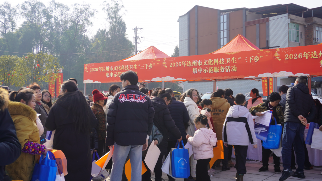 活动中,文化下乡以本土民俗与巴賨文化为特色,文艺节目轮番上演,现场年味浓厚、热闹非凡。“文化惠民轻骑兵”现场书写春联、创作书画,将新春祝福与文明新风送到群众手中,累计送出春联、书画作品百余份,用文化滋养民心、传承文脉。通过科普大篷车巡回科普、科技用品实物展示、智能机器人互动体验等形式,把实用科技知识送到基层,提升群众科学素养,以科技助力乡村发展。同时普及安全生产、网络防诈骗等知识,以科技力量为乡村产业提质增效。卫生下乡聚焦群众健康需求,医疗团队开展集中义诊,为群众测量血压血糖、诊断常见病、提供慢病指导,并免费发放药品和健康资料,采用“集中服务进村延伸”的方式扩大覆盖,同步宣讲医保政策,真正解决群众“看病远、看病难”的问题,整场卫生服务惠及群众数百人次。
