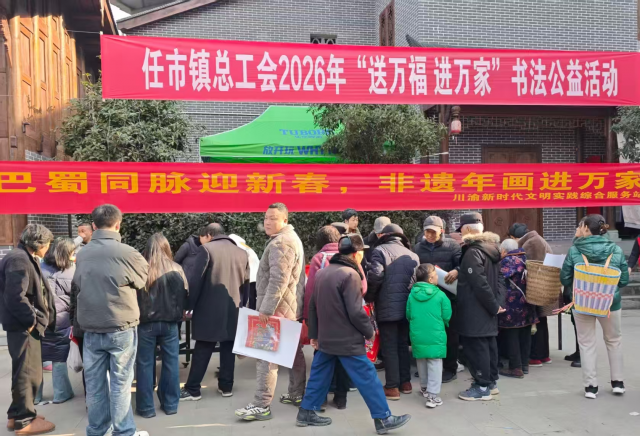 新春将至,年味渐浓。为弘扬中华优秀传统文化,丰富群众精神文化生活,深化新时代文明实践工作,让喜庆祥和的年味与文明新风浸润人心,2026 年 2 月 12 日,任市镇联合新盛镇在任市陶牌坊广场共同举办 “巴蜀同脉迎新春,非遗年画进万家”新春送祝福活动,为辖区群众送上满满的新春祝福与文化盛宴。