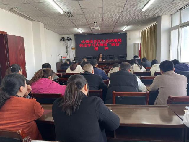 3月5日,开江生态环境局召开职工大会,专题传达学习达州市第五届人民代表大会第八次会议和政协达州市第五届委员会第六次会议精神,并结合全县生态环境保护工作实际,研究部署贯彻落实举措。