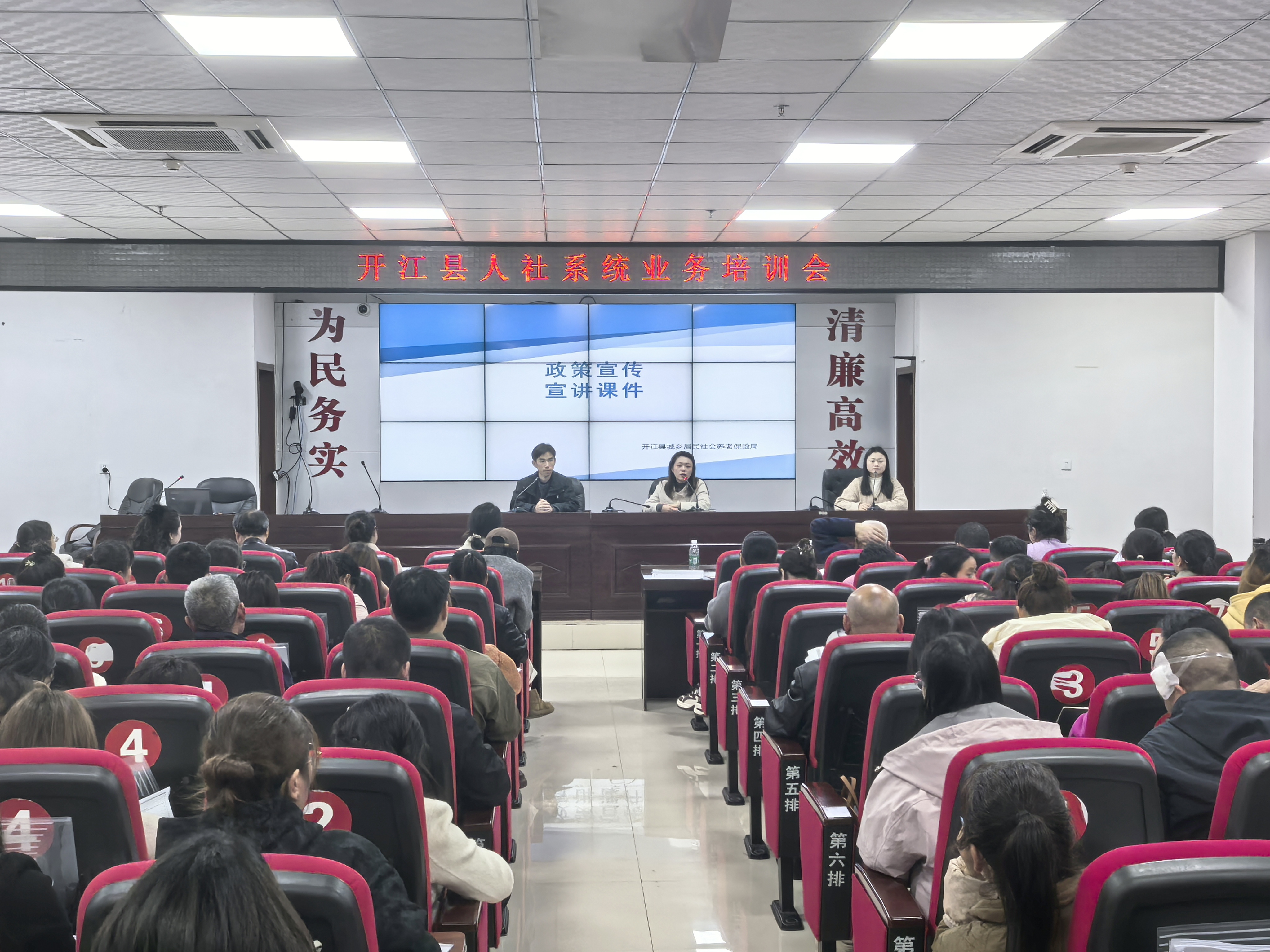 为推动我县城乡居保基层服务提质增效,2026年3月31日,开江县居保局组织举办全县乡镇(街道)居保经办人员和村(社区)协办员业务能力提升培训会,旨在提升基层服务人员对参保缴费、待遇申领、违规领待等政策掌握度和操作熟练度,着力打通高质量服务群众的“最后距离”。